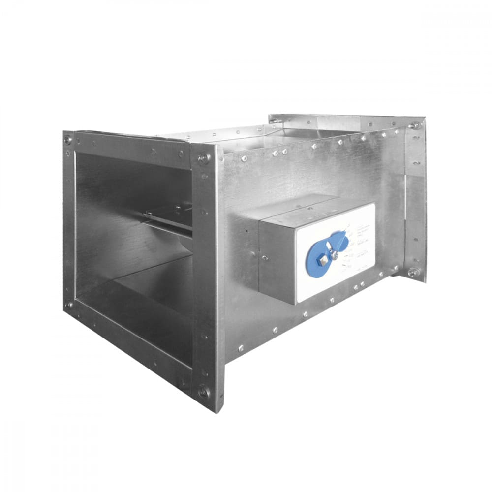 Régulateur mécanique sans énergie pour conduits rectangulaires, qui maintient un débit d’air constant malgré les variations de pression.